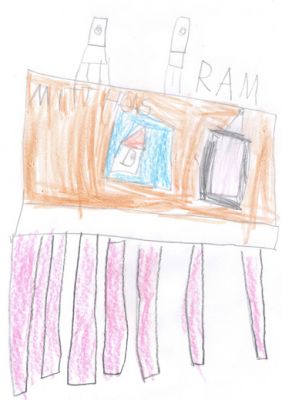 ”Det är roligt att måla vid staffli! Jag tycker att det är kul att min teckning hänger där på väggen. Det är en fin guldram”