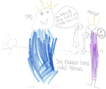 ”Man låter någon vara med och spela tennis” – Du kan få vara med och spela tennis (jag skakar hand med Marcus). – Ja, tack!